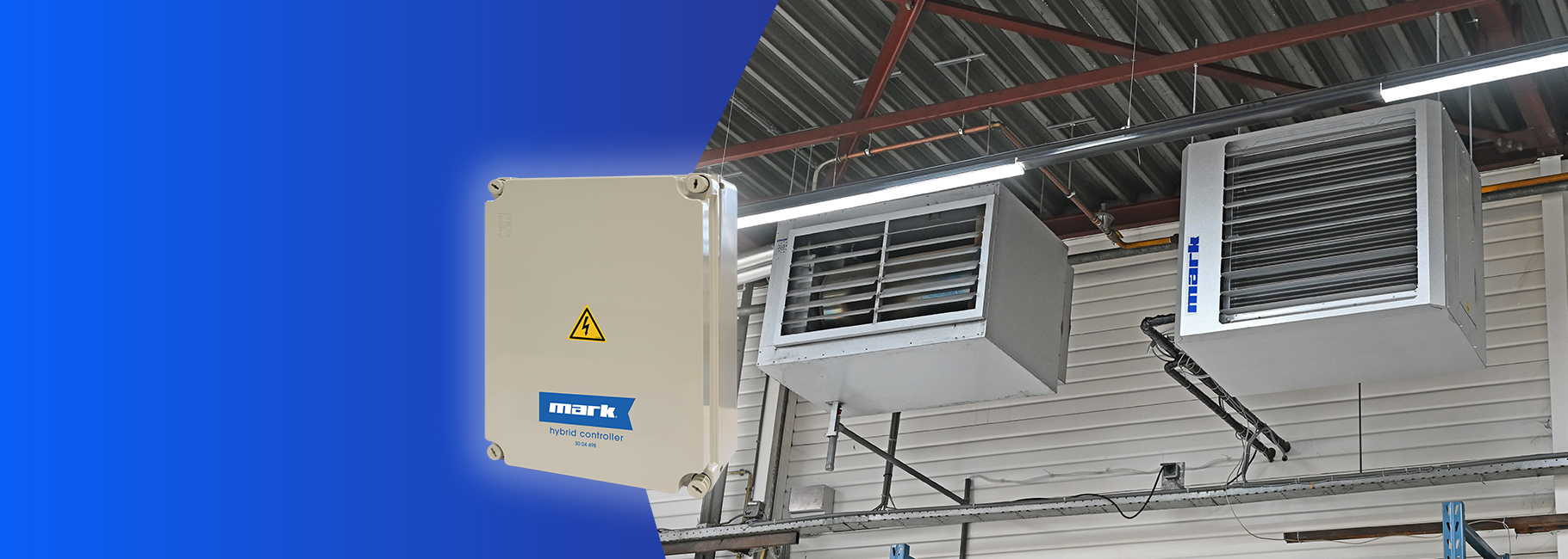 Vous souhaitez réduire la consommation de gaz de votre hall industriel, atelier ou entrepôt sans compromettre le confort ? Optez alors pour notre solution de chauffage hybride avec le contrôleur hybride intelligent. Cela vous permet de combiner un aérotherme au gaz ou électrique existant ou neuf avec le système de pompe à chaleur Mistral MDX à haut rendement énergétique.