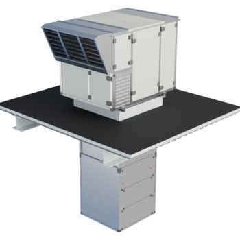 Associé à une pompe à chaleur, VertiFlow offre également une solution durable pour le post-chauffage et le post-refroidissement. Il en résulte une solution de climatisation pérenne et économe en énergie, garantissant un confort optimal dans tout type de hall industriel.