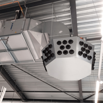 Les systèmes de pulsion à haute induction de Mark Climate Technology sont disponibles en plusieurs versions et tailles. Étant donné que nous disposons de notre propre département d’ingénierie et de production, tout système de distribution d’air est concevable. Contactez-nous pour connaître les possibilités.
